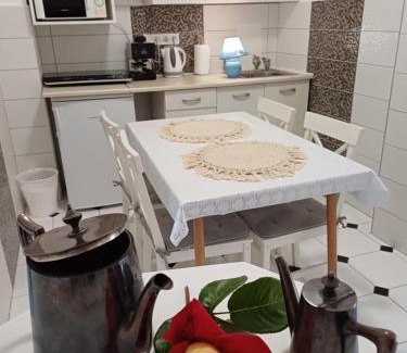 Food & DrinkTea/Coffee makerBathroomTowels, Toilet, Shower, Guest bathroom, Bathtub or shower, Bathtub, Toilet paper, Hairdryer, Private bathroomMedia & TechnologyFlat-screen TV, TV, Cable channelsGeneralTile/Marble floor, Private entrance, Trash cans, Fan, Hardwood or parquet floors, Heating, Smoke Alarm, Fire extinguisher, Carbon monoxide detector, Air conditioning, Key access, Ironing facilities, Mosquito net, Hypoallergenic, SoundproofKitchenKitchenware, Electric kettle, Refrigerator, Wine glasses, Kitchen, Microwave, Stovetop, Coffee machine, Cleaning products, Toaster, Dining tableOutdoorsBarbecue, Outdoor dining area, Outdoor furniture, PatioBedroomLinens, Extra long beds (> 6.5 ft), Wardrobe or closetLiving AreaDining area, SofaViewCity view, Garden view, Quiet street view, ViewAccessibilityUpper floors accessible by stairs onlyRoom AmenitiesDrying rack for clothing, Clothes rack, Socket near the bed, Hypoallergenic pillow, Non-feather pillowEntertainment & Family ServicesBoard games/puzzlesPhysical distancingSingle-room AC for guest accommodationCleanliness & disinfectionHand sanitizer |
