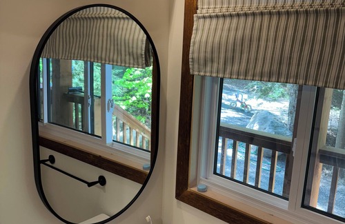 A wood burning hot tub is perfect for cooler days and magical after the sunsets under the stars or hanging lights surrounded by towering trees. Relax in warm lake water without the smell of chemicals.