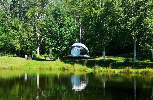- Unique dome experience: comfort, kitchen, lake, campfire. Open mid-May to Octobe