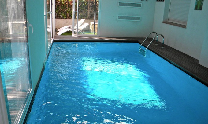 Ideally located halfway between Nice and Cannes. Built in 2011 and fully air-conditioned. There is a TV in each bedroom. Large terrace and very bright. Located in a quiet residential area, close to the sea and Marina Baie des Anges. Close by foot to all shops and close to Marineland. Interior swimming pool heated and detached private Jacuzzi. Private car park. Zen atmosphere, contemporary decoration, refined bedding, and quality linen. Pictures are regularly updated!