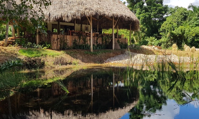 The House was built with off grid solutions , regenerating the river and with local materials in an authentic caribbean style.
