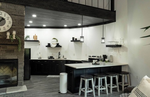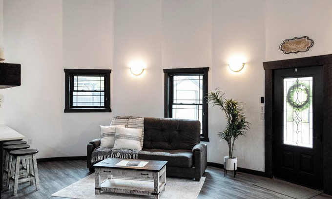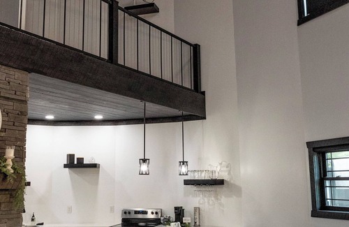 This gorgeous grain bin vacation rental is located in the rolling hills of Peebles OH and boasts the perfect amenities to make your stay a wonderful experience. As you step inside, your eyes are drawn upward to the expanse of repurposed grain bin that reaches 28 feet up. On ground level, there is a cozy and well-appointed living room with a queen-sized sleeper sofa and a beautiful stone fireplace. This area is flooded in natural light with lots of windows outfitted with remote controlled blinds, which allows you to control the ambience. There's a kitchen that's furnished with the basics for your cooking needs, a full bathroom with a luxurious walk-in shower. In the living room is a spiral staircase that leads upward to the loft area where you'll find a spacious and romantic bedroom that's beautifully decorated and furnished with a queen-sized bed. Outdoors is an expansive patio boasting a smokeless firepit with a stash of firewood, an outdoor dining area, a gas grill and person hot tub complete with a pergola and mood lighting. This rental is the perfect couple's retreat, or girl's getaway. There has been great attention given to detail with this rental and every effort has been made to make your stay unforgettable.