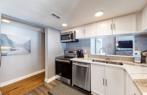 This beautifully updated condo in Wintergreen Resort makes for the perfect getaway no matter what time of year you visit. Soaring ceilings, modern decor make and large picture windows make for a bright, stylish interior. If the weather permits, start the day on your patio with a cup of coffee. When you start gettin hungry, the well-equipped kitchen offers a full suite of stainless steel appliances and gleaming white cabinetry and countertops. Eat together at the large dining table or pull up a barstool to keep it casual.