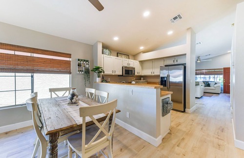 Step into paradise when you stay at this 2-bedroom, 2-bathroom Gilbert vacation rental. With plenty of at-home amenities and a beautiful interior, you and the family are sure to have a perfect extended trip in sunny Arizona! The community pool is the perfect place to spend the day and work on your tan, but when you feel like getting out of the house, be sure to check out shopping, golfing, and dining — all conveniently located near this pet-friendly Arizona vacation rental.