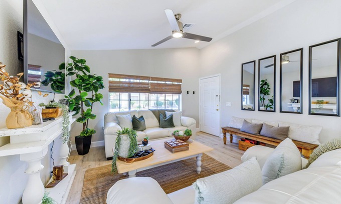 INDOOR LIVING: 2 Smart TVs w/ cable, newly remodeled interior, board games, books, dining table, ceiling fans, modern decor & furnishings, walk-in closets