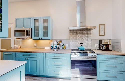 Whether you spend your vacation swimming, golfing, or riding bikes, you'll love coming home to this tree-lined respite. Rinse off any lingering sand in the outdoor shower, watch your kids play tag in the grass, and sneak afternoon naps in the hammock. Both a Big Green Egg and a gas grill are on hand for barbecue dinners, so you can set the outdoor table and dine alfresco with the sunlight filtering through the trees.