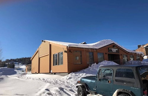 Cozy cabin-style condo, one bedroom/loft with two full bathrooms. The open loft area has a king-size bed, while a downstairs nook with two twin beds offers space for all four guests. It is conveniently located 10 mins walk to the Navajo ski slopes. The condo has covered parking, a clubhouse with heated pool, jacuzzi and sauna room.