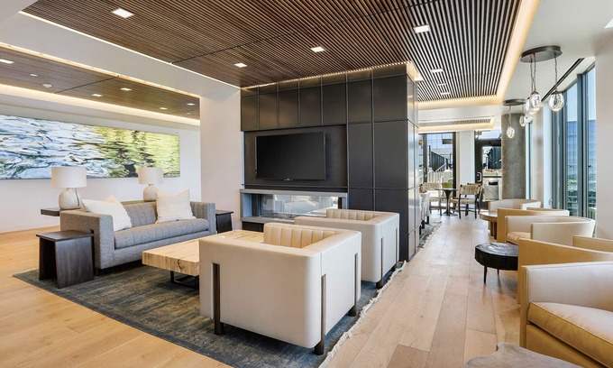 Absolutely Stunning 1-Bedroom Plus Den at The Coloradan with Union Station Views! Experience the best of downtown Denver living in this impeccably designed residence at The Coloradan. Floor-to-ceiling windows frame sweeping views of Union Station and the city skyline, filling the open-concept living and dining areas with natural light. The spacious kitchen is a chef’s dream, featuring a large island for easy meal prep and casual dining, sleek solid-surface counters, stainless steel appliances, and a gas cooktop. The inviting bedroom offers French door entry, a generous walk-in closet with a custom organizer, and direct access to the luxurious primary bath—complete with double sinks, a soaking tub, and a unique dual-shower design, all finished in elegant tile. A stylish half bath adds convenience for guests. Additional highlights include an in-home laundry area with ample storage space and full-size washer/dryer capability. All utilities included—water, sewer, electric, gas, internet, and trash—so you can move in and start enjoying your new home immediately. As a resident of The Coloradan, you’ll enjoy unmatched amenities: a rooftop pool and hot tub with panoramic city views, a state-of-the-art fitness center, a business center, community lounge, 24-hour front desk, and more—all just steps from Union Station, premier dining, and vibrant city life.