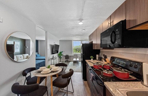 Stay in style in the eclectic city, home to the largest Oktoberfest in the USA—Cincinnati. This classy 485-square-foot (~45-square-meters) studio apartment features 2 Full Beds for your comfort, Lightning Fast Wifi, a Separate Workstation, a Fully Equipped Kitchen, and other Luxury Amenities—specially designed for your longer length stays! Step out to a lively neighborhood, just 5-7 minutes to Downtown—surrounded by the restaurants, cafés, bars, and shops this exciting city has to offer!
