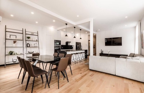 Discover refined luxury in this beautifully curated unit, perfect for 4-6 guests. The space is over 1,680 square feet and features three bedrooms, two bathrooms, high ceilings, high-end decor, a magazine-worthy kitchen, plush bedrooms and stunning city views. Nestled in Montreal’s vibrant Plateau Mont-Royal, you're steps from Quartier des Spectacles and Old Montreal. Enjoy easy access to top attractions and local hotspots in downtown Montreal.
