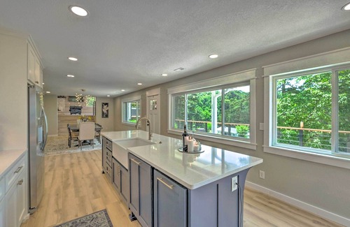 Sporting a sleek interior, views of the water, and immaculate outdoor space, this chic cottage is perfect for families visiting Beaver Lake!