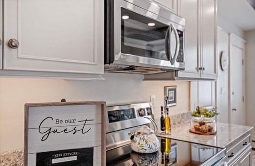 Inside, you’ll find upscale comfort with modern finishes, elegant furnishings, a fully equipped kitchen, and thoughtful touches throughout. Whether you're here for a quick getaway or a longer stay, you'll love the private entrance, off-street parking, and unbeatable location.