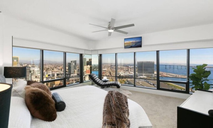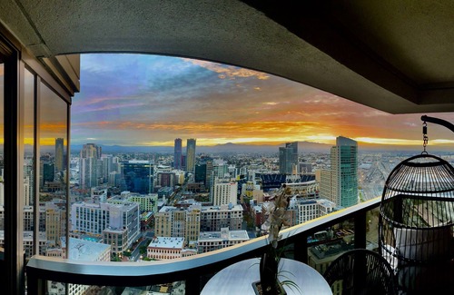 Upscale condo, newly renovated with spectacular views. Floor to ceiling windows in every room showcase the Coronado bridge and city views. Balcony overlooking Petco Park, and the Bay.