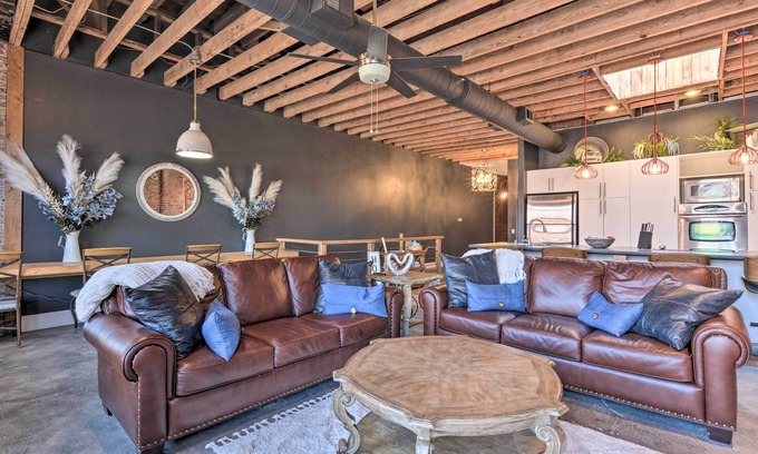 Visit Springfield in style at this modern 2-bedroom, 2-bathroom loft! The chic vacation rental apartment boasts a spacious interior with exposed brick, sleek finishes, and ample lighting. The best of downtown is right outside your doorstep, so take advantage of peaceful strolls to nearby eateries, coffee shops, and more. Learn something new at the Springfield Art Museum, just 2 miles away, or take a tour of Missouri State University’s campus. This gem has convenience and comfort mastered!