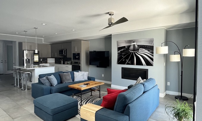 This spacious Upscale Modern home is located in the heart of Central Park. Fully furnished 5 bedroom home with many options to decompress, a sizeable kitchen to cook big family dinners in, two patios, an office and study nook.