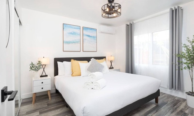Immerse yourself in the luxury and comfort of our meticulously renovated 2-bedroom house, nestled in the homely neighborhood of Grant Hill, downtown San Diego. A haven for up to 6 guests that marries modern convenience with a touch of tranquility. BBQ grill, fire pit, 65" HDTVs and more await you. A stone's throw away from popular attractions such as San Diego Zoo and Balboa Park; you're right at the heart of the California Dream!