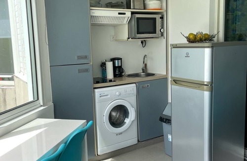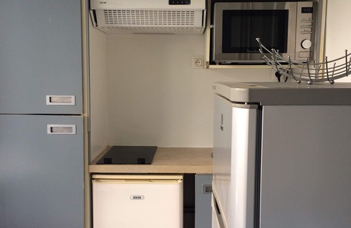 Air conditioning, equipped kitchen (induction cooker, mini refrigerator/freezer, microwave, television, broadband internet, table and iron).