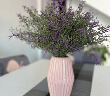 Food & DrinkChocolate/Cookies, Bottle of water, Wine/Champagne, Fruit, Tea/Coffee makerBathroomShower, Bathtub or shower, Conditioner, Toilet, Slippers, Private bathroom, Towels, Toilet paper, Hairdryer, Shampoo, Free toiletries, Shower cap, Bidet, Body soapMedia & TechnologyTV, Radio, Cable channels, Flat-screen TV, Pay-per-view channels, Streaming service (like Netflix), Satellite channelsGeneralTrash cans, Heating, Ironing facilities, Hardwood or parquet floors, Tile/Marble floor, Fire extinguisher, Private entrance, Iron, Smoke Alarm, Air conditioningKitchenKitchen, Oven, Electric kettle, Cleaning products, Dining table, Refrigerator, Dishwasher, Microwave, Kitchenette, Coffee machine, Stovetop, Washing machine, KitchenwareLiving AreaDining area, Sitting area, SofaBedroomWardrobe or closet, Childrens' cribs, Walk-in closet, LinensAccessibilityEntire unit located on ground floor, Upper floors accessible by stairs onlyBuilding CharacteristicsPrivate apartment in building, Semi-detached, DetachedRoom AmenitiesSofa bed, Hypoallergenic pillow, Clothes rack, Non-feather pillow, Drying rack for clothing, Socket near the bedViewQuiet street viewCleanliness & disinfectionHand sanitizer |