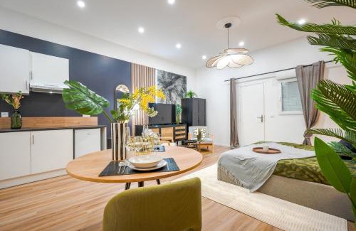 Urban Chic Hypercentre, Spa double is a recently renovated apartment in Bordeaux, near Stone Bridge. Housed in a building dating from 1900, this apartment is a 11-minute walk from Saint-André Cathedral and 0.6 miles from Place de la Bourse. The accommodation offers a hot tub, free Wifi throughout the property, and luggage storage space. This apartment includes 1 bedroom, a living room and a flat-screen TV, an equipped kitchenette with a dining area, and 2 bathrooms with a hot tub and a washing machine. Towels and bed linen are featured in the apartment. For added privacy, the accommodation features a private entrance. Popular points of interest near the apartment include Great Bell Bordeaux, Saint Michel Basilica, and Museum of Aquitaine. Bordeaux–Mérignac Airport is 8.1 miles away.