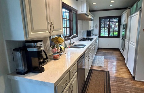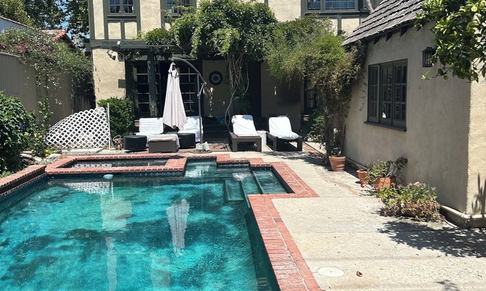 Your Los Angeles adventure begins at this 4-bedroom house with black bottom solar heated Pool. On a quiet street but around the corner from world-famous restaurants, and shopping. Walking distance to UCLA, Westfield Century City mall, or Beverly Hills, and the train station that will take you directly to Santa Monica Pier and beach or to Downtown LA to all the museums and theaters. Best location in the city!!! Great home for adventurers, families as well as business travelers. Home has gorgeous hand wooden crafted doors, French doors, and lots of windows. The outdoor backyard is a continuation of the house giving an indoor/outdoor living space especially in warmer days… go from the couch to the pool in just a few steps and soak in the sun on the chaise lounges after…Step inside and discover a fabulous and private retreat that will make you feel right at home. With1 king bed, 2 queen bedrooms, and 1 twin bed, there's plenty of space for you and your guests to relax and unwind. There are 2 SMART TVs. The house features Air/Heat, WiFi, a washing/dryer machine, a fully equipped chef's kitchen with all the utensils and tools to ensure your stay is superbly comfortable. Indulge in the 3 bathrooms, complete with a shower, hair dryer, bathtub, and even a jetted bathtub for ultimate relaxation. Backyard not only has a pool but all the outdoor furniture you'll need such as a dining set for 8 and a Weber barbeque. Easy free parking in the driveway and/or on the street. Our place will help you feel at home while you're traveling in Los Angeles. The convenience to walk to cafes, groceries, juice/coffee shop, nail and hair salon, and quick drive to most of the top areas in L.A. makes this place a must!