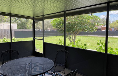 Enjoy easy access to everything from this centrally located private home, off of I-75 and SR-60. Airport, Downtown Tampa, Busch Gardens, Universities are within 20 mile radius. Variety of restaurants, Starbucks, Publix Supermarket and the Brandon/Westfield Malls are within 3 mile radius. Contemporary, newly renovated with 75 inch TV for your viewing pleasure. Self check in, free Wi-fi and parking, complimentary coffee, tea and water……Welcome to Urban Oasis…..a hidden gem in the heart of Brandon. Newly renovated, contemporary 1000sf of living space. Perfect for families, friends and professionals looking to either relax or explore the Tampa Bay Area has to offer. The space is open concept with a full size kitchen and island with quartz countertop. The livingroom has a leather sectional and a 75 inch smart TV, ROKU and opens to the dining area. Huge window and french doors invite the light in that makes it bright and airy. The 1st bedroom has a queen bed, large closet and work station. The 2nd bedroom has 2 twin beds and closet. All rooms have ceiling fans. The bathroom is luxurious with double sink and quartz countertop. Laundry is available in the home for your convenience. The covered screened lanai is right off the dining area for you to enjoy.