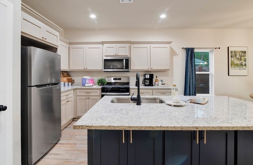 Get ready to relax in this marvelous 3-bedroom house in Tulsa. This tremendous property offers a cozy atmosphere with its 1 king bed, 1 queen bed, and 1 full bed. You'll feel right at home with amenities like heating, iron, WiFi, hair dryer, AC, and a washing machine. The 2 bathrooms are equipped with hair dryer, shower, and bathtub. Whether you're exploring the city or simply enjoying some downtime, our terrific house provides the perfect retreat. It's easy to see why you'll be able to unwind at our place.
