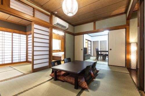 Food & DrinkTea/Coffee makerBathroomToilet paper, Towels, Private bathroom, Slippers, Shower, Shampoo, Bathtub or shower, Body soap, HairdryerMedia & TechnologyFlat-screen TV, Streaming service (like Netflix), TVGeneralTrash cans, Carbon monoxide detector, Iron, Smoke Alarm, Air conditioning, Fire extinguisher, HeatingKitchenKitchen, Refrigerator, Kitchenware, Dryer, Washing machine, MicrowaveBedroomLinensRoom AmenitiesTatami (traditional Japanese flooring) |