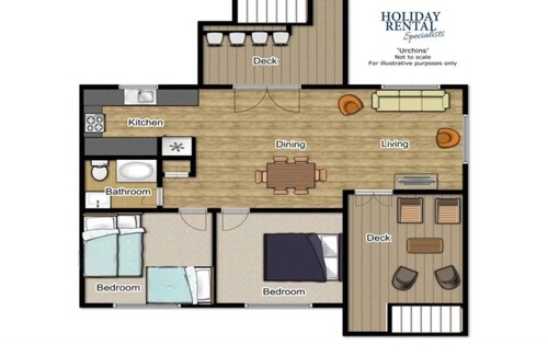 Urchins will accommodate up to 5 people providing 2 bedrooms with a queen size bed in the main and a tri bunk plus a single in the second. It has open plan living, dining and kitchen area and a bathroom. You can enjoy all year round cooking with a large BBQ and a custom built outdoor wood fired pizza oven in the large backyard.