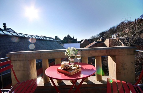 Perfect for one or two people, the living room is very bright and has a balcony with a magnificent view of the Montagne de Bueren and the St Antoine church.