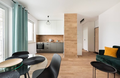 Ursynów Kłobucka Comfort Apartment has a perfectly furnished living room with a sofa bed, a well-equipped kitchenette, a bedroom with a comfortable double bed and a stylish bathroom. It offers a range of first-class amenities, including a fridge, dishwasher, oven, hairdryer, iron, washing machine, free Wi-Fi and smart TV. It is complemented by a spacious balcony where you can enjoy a pleasant leisure break. A parking space in the underground garage is available to guests.