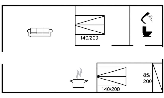 "Uschi" - 86m from the sea", 2-room house 67 m2. Object suitable for 5 adults. Living room with TV. 1 room with 1 double bed. 1 room with 1 double bed and 1 sleeping facility. Kitchen (oven, dishwasher, 4 ceramic glass hob hotplates, microwave, freezer). Shower/WC. View of the sea. Facilities: children's high chair, baby cot. Internet (WiFi). Please note: non-smokers only. Maximum 1 pet/ dog allowed. 326-20087