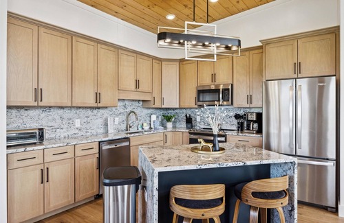 The main house has a full kitchen, large dining area, great room, a unique indoor container pool, rooftop bar, game room and laundry room. Three of the four bedrooms in the main house have a king bed with ensuite bathroom. The fourth bedroom in the main house has two queen beds and an ensuite bathroom. In addition to the four ensuite bathrooms the main house has a half bath on the main level and a half bath in the lower level.