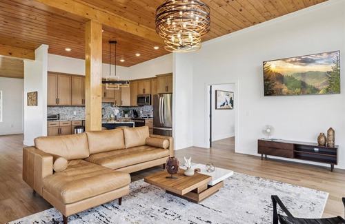 One of the biggest reasons to rent a cabin in the Smoky's is for the view and this property delivers. A modern twist on the Tennessee cabin, guests can enjoy a spectacular view with a contemporary design. The main house is equipped with four bedrooms and a bonus fifth bedroom in the detached treehouse.
