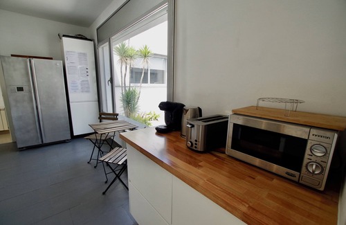 Beautiful fully equipped independent kitchen with views of the great Buddha statue located in the garden