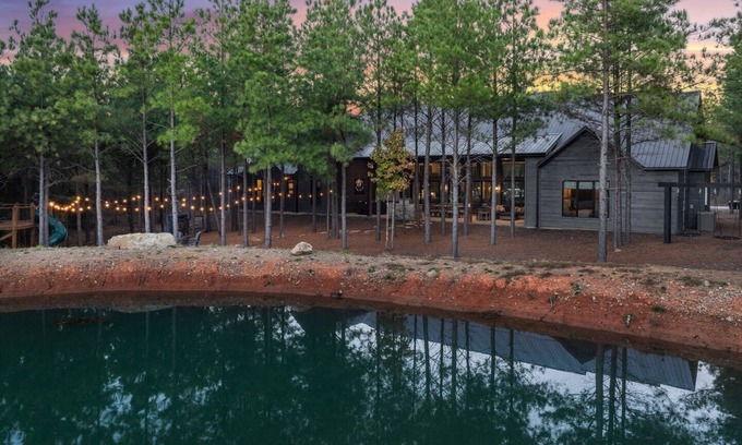 Welcome to Lost at Last! A luxury family cabin in Broken Bow, OK, nestled on a private, stocked fishing pond with beautiful waterfront views. This spacious retreat comfortably sleeps up to 19 guests with 4 private King Master Suites and a large bunkroom perfect for families, groups, friends, reunions, and retreats.