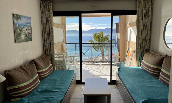 A two-room apartment for up to four people, 30 m2 plus 8 m2 balcony. It is cleverly equipped and very practical. The balcony offers a breathtaking view over the sea, the beach, the western coast, the Esterel mountains, the swimming pool and the palm garden.