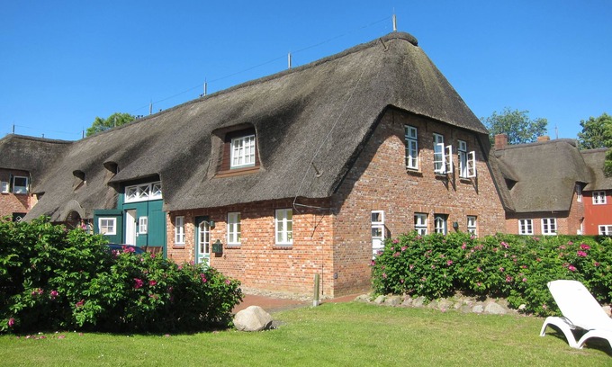 The apartment is located in a cozy Frisian thatched cottage complex - quiet located on the outskirts of Wrixum. The thatched cottage is located on a spacious garden area with fruit trees and wild roses, which meets with our guests on very positive resonance. From here you have a nice view of the march.
