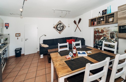Living / dining area with comfortable living area and dining area for 5 people, flat-screen TV in HD quality, DVD player and mini stereo system, different reading and board games. Free internet via WiFi hotspot.