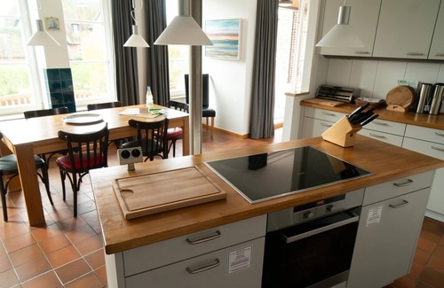 A spacious, modern renovated apartment with exquisite furniture for a pleasant and exclusive Föhr vacation near the beach in Nieblum. The apartment RÜM HART is located in the quiet district of Goting in the immediate vicinity of the Goting cliff and the guarded bathing beach. You can expect a pet-free non-smoking apartment, ideal for allergy sufferers. We are happy to offer you the apartment in combination with the upper floor apartment KLAAR KIMMING. Visit our homepage: www. greenwai4. de