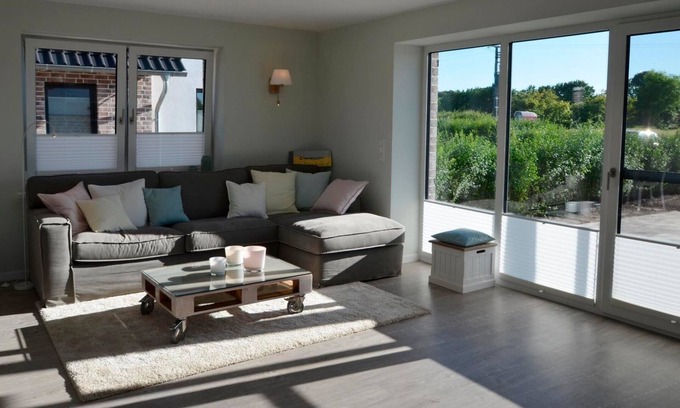 Completed in July 2015, the holiday apartment "Småland" is only 80 meters away from one of the most beautiful beaches of the Baltic coast in Kronsgaard / Angeln and impresses with its spacious layout, the large garden with swing and sandpit and the sauna.