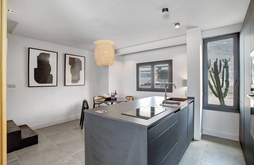 The holiday apartment Casa Lua in Santa Maria de Guia is the ideal accommodation for a relaxing holiday with a view of the Atlantic. The 80 m² property consists of a living room, a well-equipped kitchen, 2 bedrooms and 2 bathrooms and can therefore accommodate 4 people. Additional amenities include high-speed Wi-Fi (suitable for video calls) with a dedicated workspace for home office, a TV as well as a washing machine.
