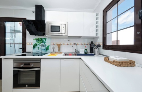 In Teguise, the holiday apartment Casa Yare, Shared Pool, Air-con offers an excellent view of the Atlantic. The 80 m² property consists of a living room, a well-equipped kitchen, 2 bedrooms and 1 bathroom and can therefore accommodate 5 people. Additional amenities include high-speed Wi-Fi (suitable for video calls) with a dedicated workspace for home office, a TV, air conditioning, a fan, a washing machine, a dryer as well as children's books and toys. A baby cot is also available.
