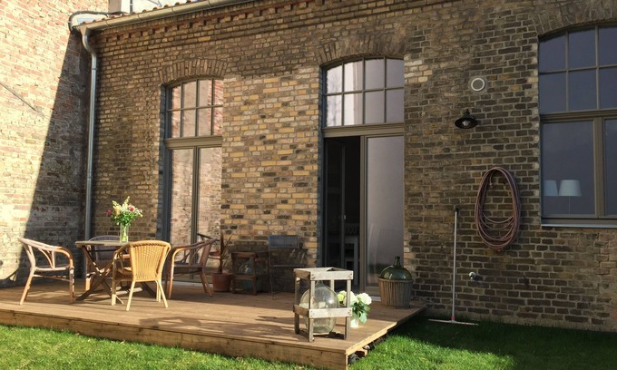 In the most beautiful part of the city Werder - on the island - with wonderful small fishermen's houses and narrow streets and surrounded by numerous waters - you will find our 53 m2 apartment with 2 bedrooms, bathroom with shower and a kitchen with terrace and garden with all modern amenities in our newly renovated coach house in the courtyard of Café Jacob. The apartment is ideal for families or couples of friends.