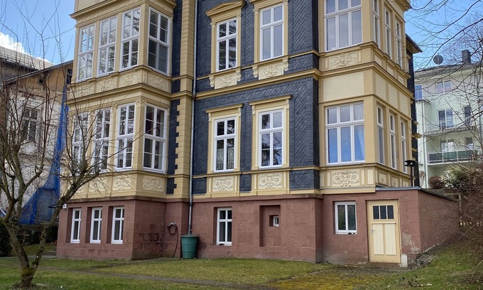 Vacation apartment "Villa am Kurpark" - Maisonette is located in Friedrichroda. Vacation apartment "Villa am Kurpark" - Maisonette provides accommodation, featuring TV, Balcony/Terrace, Wellness Facilities, among other amenities. This Apartment features TV, Balcony/Terrace, Wellness Facilities, to make your stay a comfortable one.