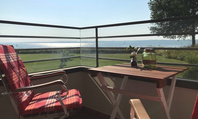 Newly renovated and spacious apartment with direct view of the Baltic Sea for a maximum of 6 persons in the Glücksburg region: - 4 rooms - 2 bedrooms (1.60x2m and 1.40x2m) - 1 connecting room with sofa bed (1.40x2m) - Well equipped kitchen - living room with smart TV - 2 bathrooms (shower and bath) - 2 balconies with direct Fördeblick - garden use - panoramic views - Wi-Fi - parking space in front of the house