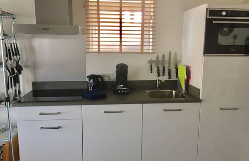 You enter the house through large, welcoming doors. The ground floor has a cozy sitting area with television. This has all the programs, including the German. Also is available in the house free Wi-Fi. The dining area is very spacious and the brand new kitchen is well equipped and has all the comforts. Think this to a combination oven / microwave, a large fridge, a dishwasher and a stove with four plates (induction cooker).