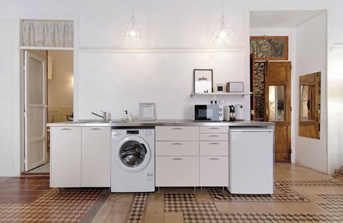 One of the special features of this flat is that it has a private washing machine, making it easy to manage the laundry.