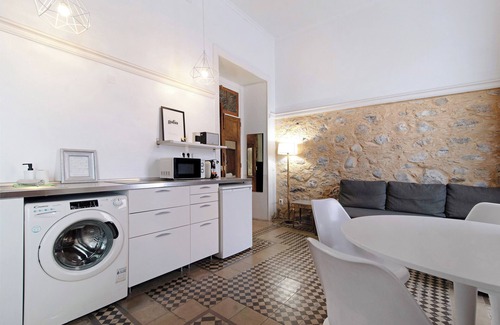 Likewise, this flat features an original ceramic floor that gives it a unique and distinctive style. This floor fits in perfectly with the exposed stone walls, which are palpable evidence of the building's antiquity.