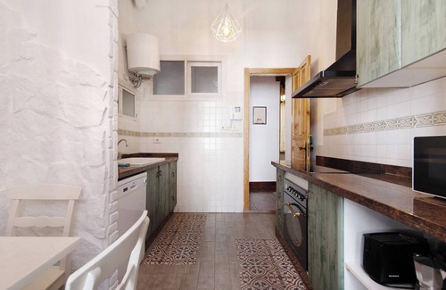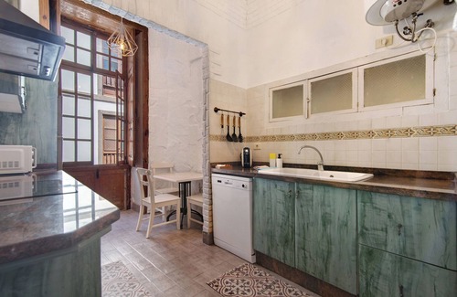 The Pepita flat is a complete house with a special charm. It is located on the first floor and has a living/dining room with high wooden ceilings dating back to the 19th century. In addition, its large windows overlooking both streets allow for excellent ventilation and natural light throughout the day.