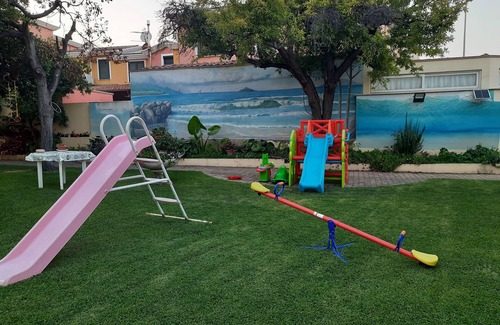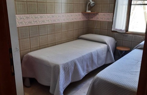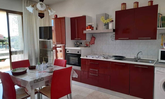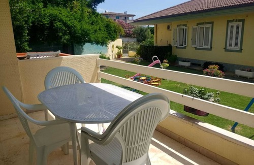 Comfortable renovated apartment, with a veranda for outdoor dining. In the bedroom 1 double bed, in the bedroom two single beds. Bathroom with shower and washing machine. The kitchen-living room is very spacious, equipped with a cooking area. sofa bed. From the kitchen-living room you exit onto the veranda with a table and chairs for outdoor dining. You can enjoy a beautiful shared garden, with a barbecue area for outdoor dinners and grills.